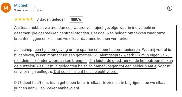 Je weet direct: wat doe ik anders, wat stop ik en waar zet ik meer op in.