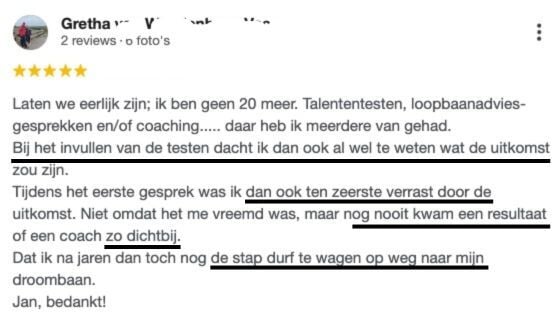Laten we eerlijk zijn; ik ben geen 20 meer. Beroepentesten, loopbaanadvies- gesprekken en/of coaching..... daar heb ik meerdere van gehad.